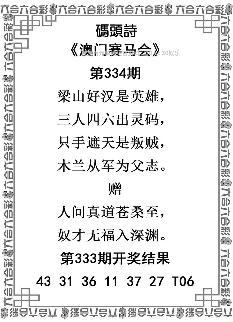 334期解析:梁山好汉是英雄,三人四六出灵码,只手遮天是叛贼,木兰从军为父志。