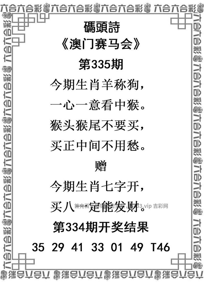 335期解析:今期生肖羊称狗,一心一意看中猴,猴头猴尾不要买,买正中间不用愁。